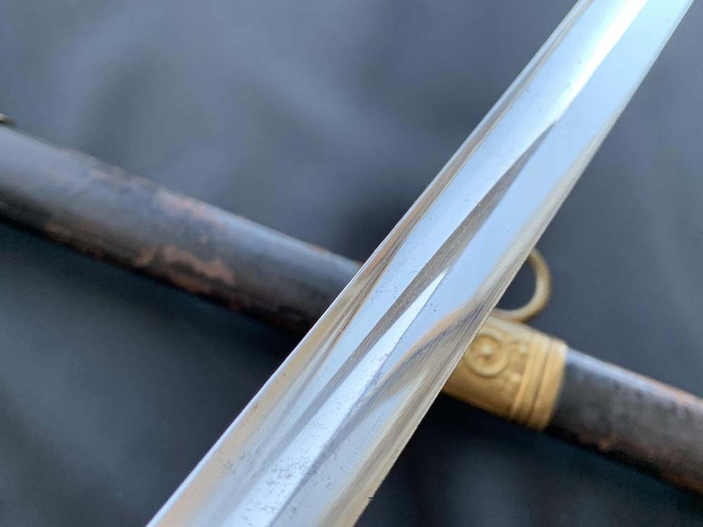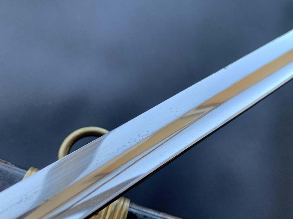 Клинок стальной, прямой, однолезвийный (в основной части), с одним долом. Боевой конец двухлезвийный. Поверхность полотна клинка покрыта никелированным наслоением. По своим боевым качествам предназначен для колюще — рубящих ударов, а также для парадного ношения. На пяте клинка есть клеймо производителя «ROBERT HERMES, SOLINGEN».