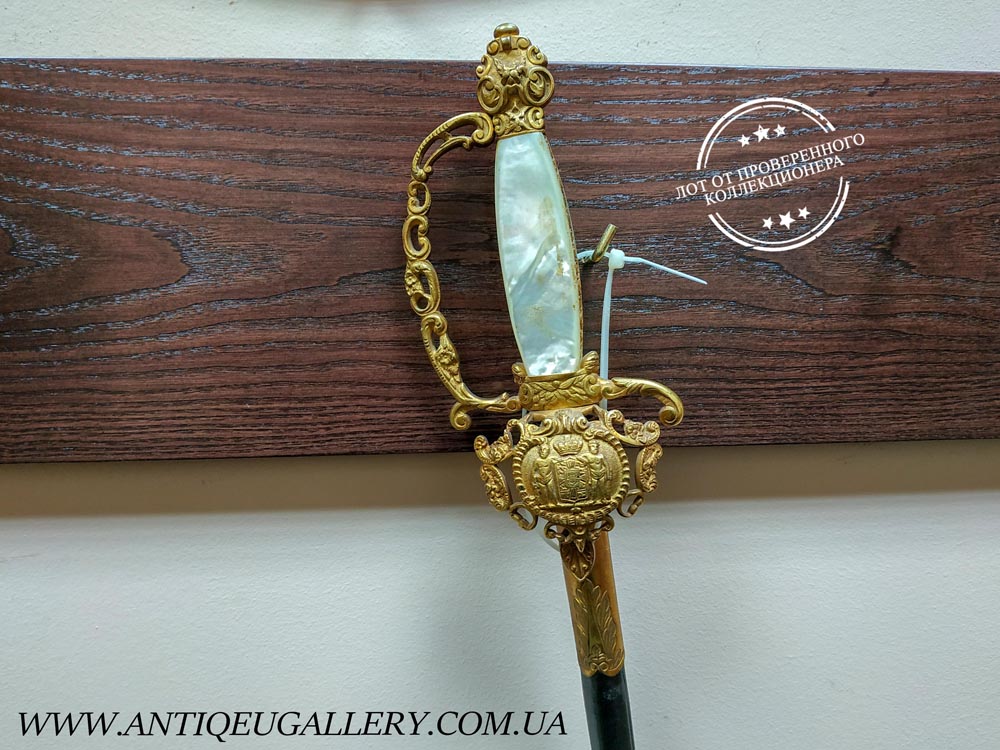 Шпага Дания 18-19 века щечки рукояти из перламутра.