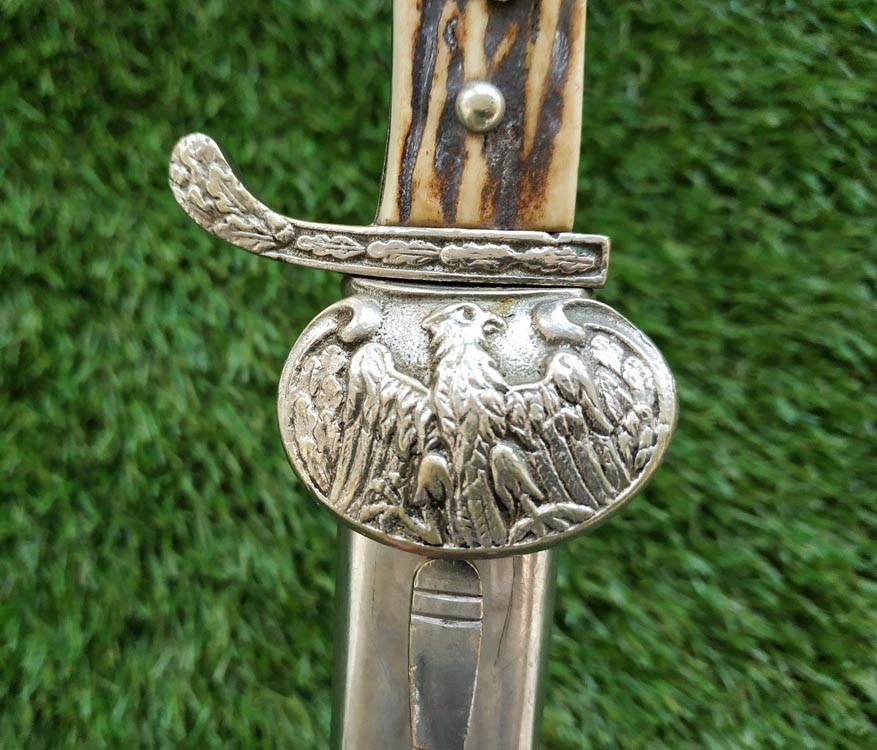 Щиток гарды украшен поднятым и мелко детализированным прусским орлом.