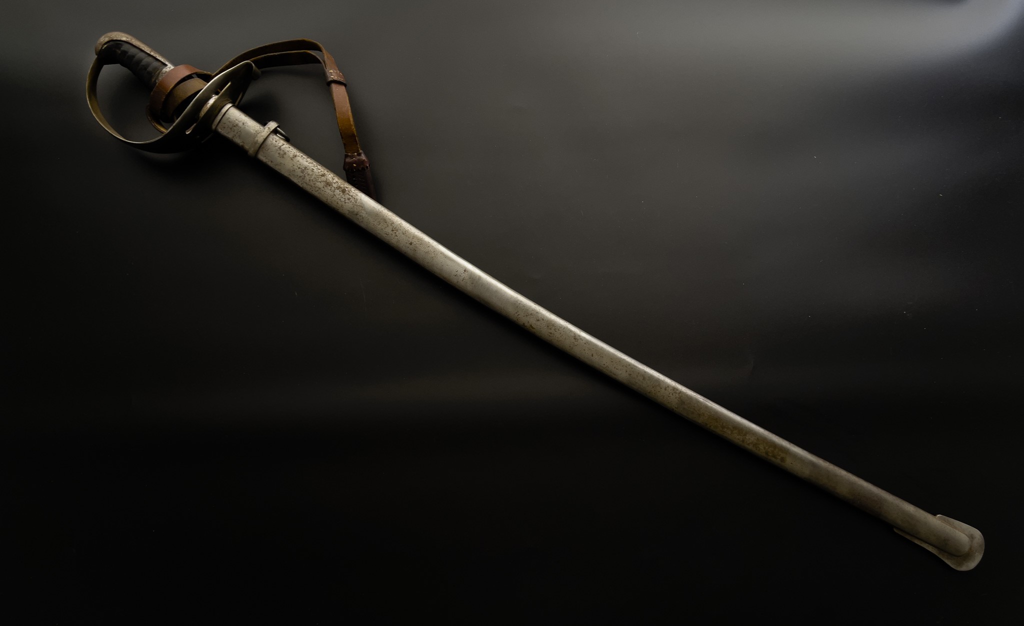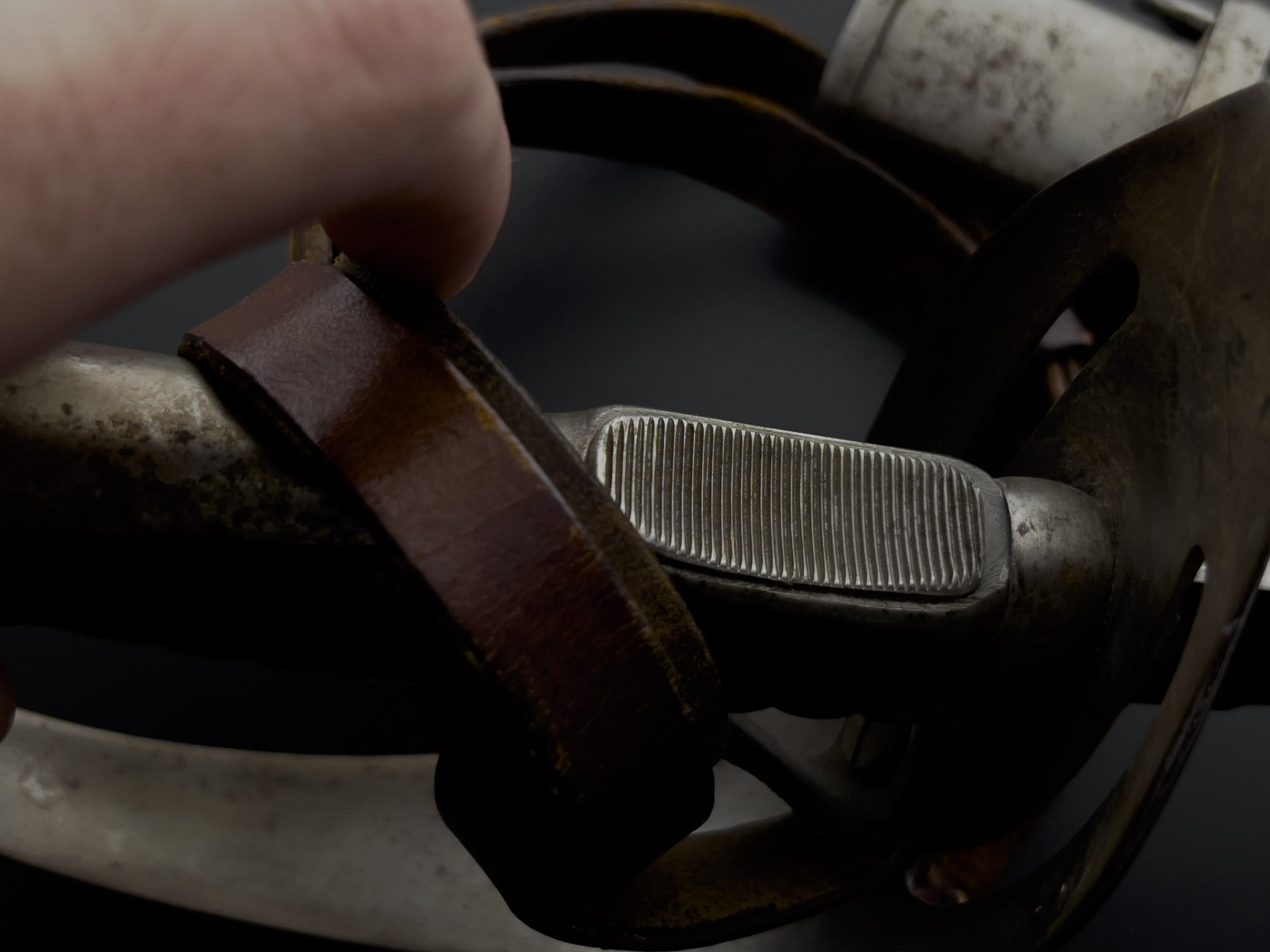 Клинок сабли стальной, незначительной кривизны, однолезвийный (боевой конец двулезвийный), с неглубоким широким долом. На пяте с правой стороны поставлено клеймо изготовителя “WAFFENFABRIK NEUHAUSEN” с изображением равноконечного швейцарского креста, на противоположной стороне цифры «А 4189», на обухе также иметься клеймо в виде цифр «394»
