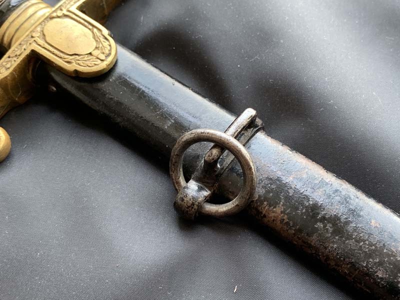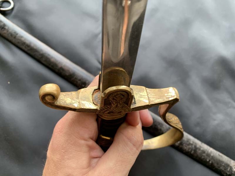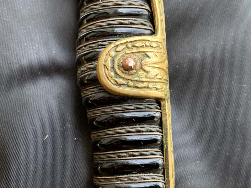 Эфес сабли состоит из рукояти и латунной гарды.