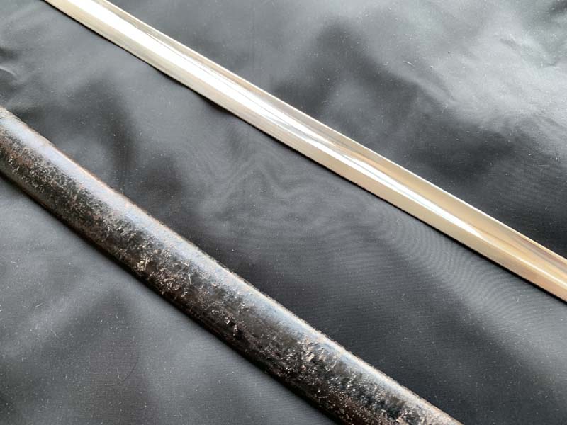Клинок стальной никелированный, незначительной кривизны, однолезвийный (боевой конец двулезвийный, уплощённый), остриё на средней линии, с неглубоким широким долом на три четверти длины полотна. На клинок вплотную к рукояти надета кожаная прокладка. С правой стороны клинка ближе к пяте выбито клеймо с надписью на немецком языке F. W. HOLLER SOLINGEN (Ф.В. ХЕЛЛЕР).