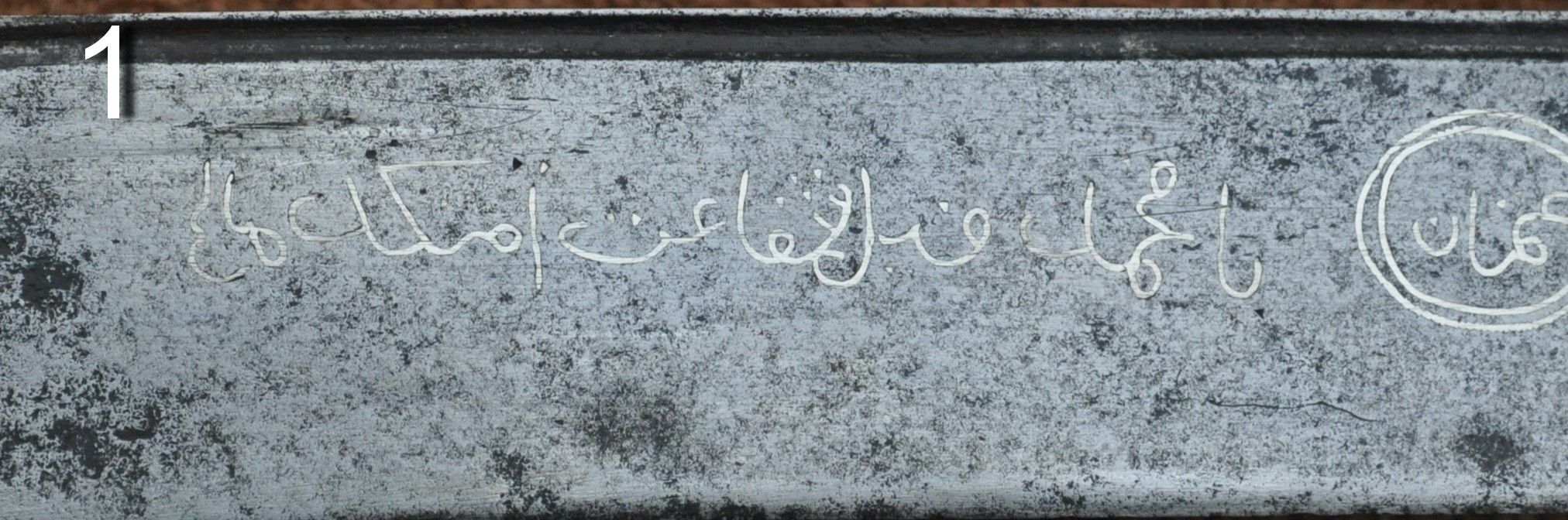 Ятаган Османская империя с надписью на клинке «работал Мохаммед, владелец Осман» и дата 1224 год Хиджры — 1809/10 г. также имеется надпись дуа — молитва:» Мохаммед, попроси Аллаха за свой народ, чтобы Всевышний был снисходителен к нему».