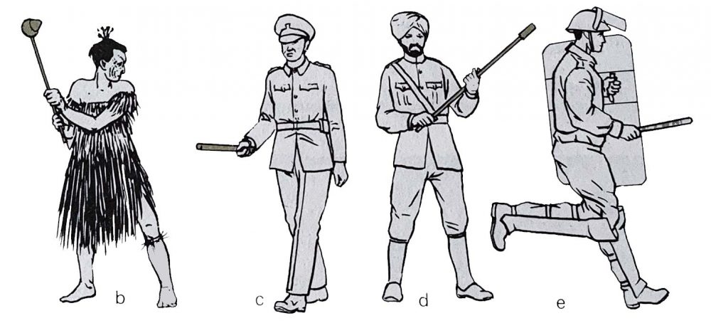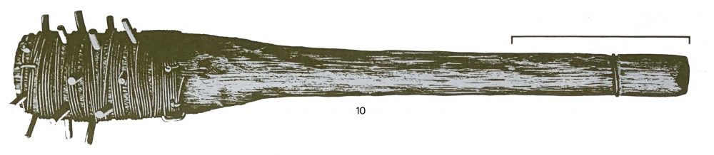 6.Деревянная булава с островов Фиджи, рукоятка оплетена травой. 7.Булава южноафриканских зулусов из дерева твердой породы. 8.Резиновая дубинка полиции Нью-Йорка. Около 1960 г. 9.Пату (булава из мягкой породы дерева) новозеландских маори. 10 Мере, булава маори из нефрита (называется также пату поунамоу). Вахайка, асимметричная булава маори из дерева или кости.
