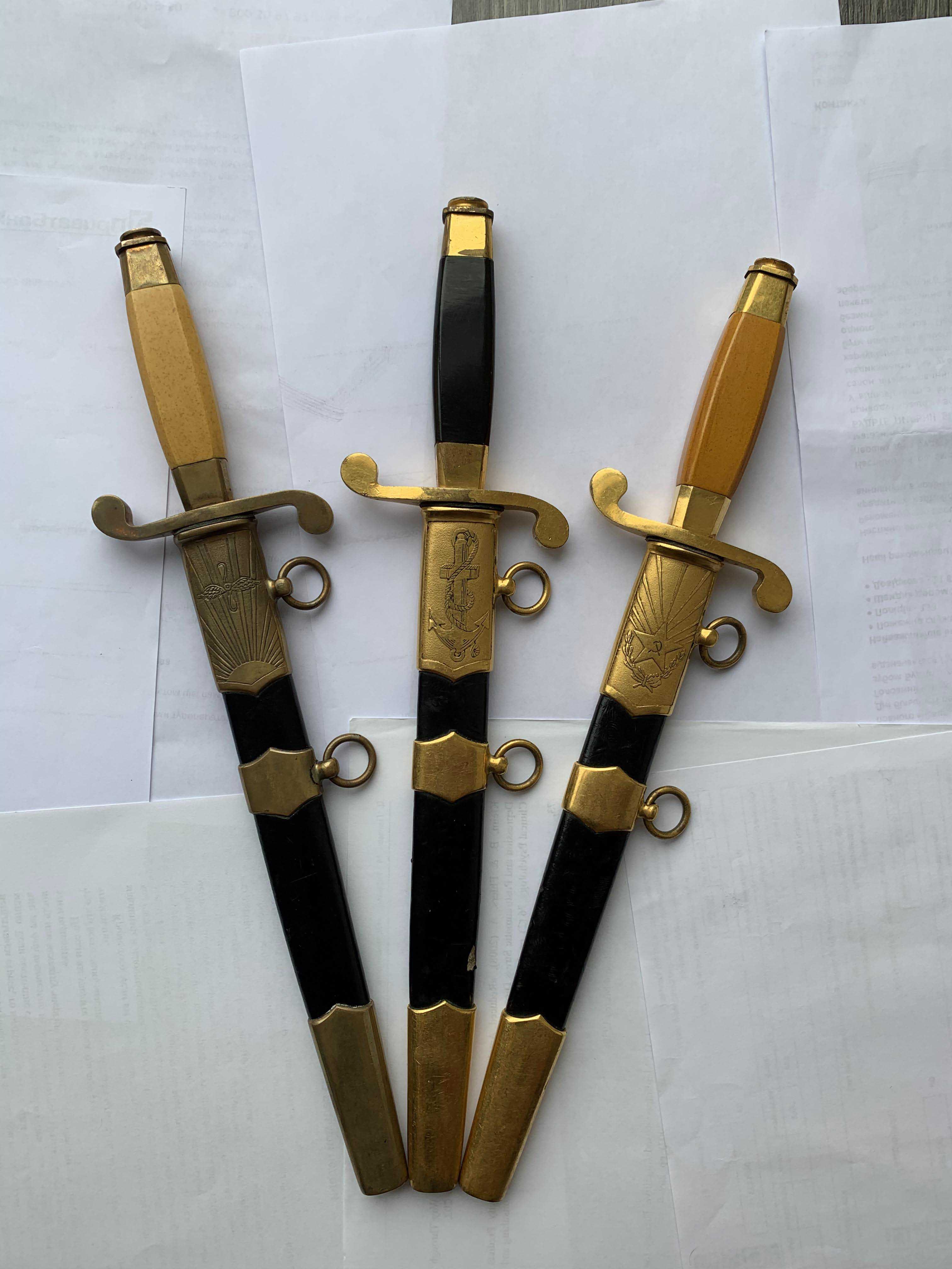 Цей кинджал був виготовлений у знаменитому місті Золінгені Карлом Айкхорном приблизно в 1933-1934 роках. Руків’я виготовлене з білого пластику, з поперечними жолобками, по яких обвита позолоченим крученим дротом. Головка руків’я виготовлена з позолоченої латуні ручної роботи у вигляді мотузкового вузла. Хрестовина зроблена з рельєфними орнаментами з позолоченої латуні ручної роботи з кінцівками у формі щупалець, …