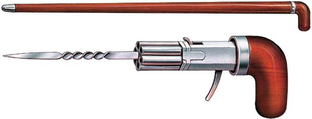 Зазвичай в інших модифікаціях і в інших цілях зброєю, замаскованим в тростину, були малогабаритні револьвери, заховані в ручках або багатоствольні «пепербокси», тобто сама тростина служила «замаскованої кобурою». Це було ще зручніше – діяти на невеликій відстані з пістолетом або револьвером було набагато зручніше, ніж підкидати масивну і відносно довгу тростину.