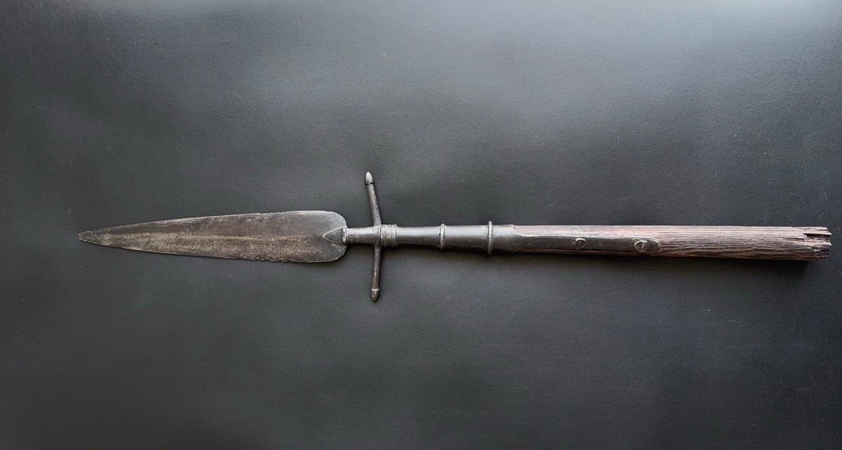 Оригінальний еспонтон піхотного офіцера Російської армії кінця XVIII – початку XIX століття. Металева частина була відреставрована – видалена іржа та проведена консервація поверхні. Дерев’яна частина частково відновлена для зручності експонування та зберігання в колекції.