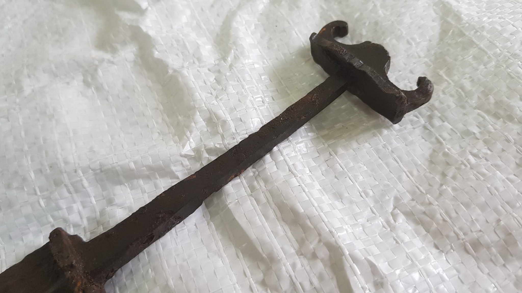 1. Аварська шабля, 9/10 століття, залізне лезо, ручка-затискач. Довжина 80,5 см. Дуже рідкісний предмет.