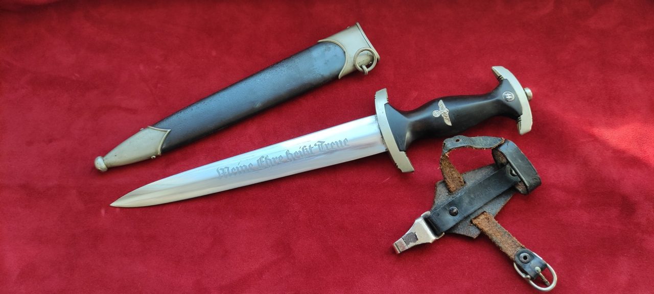 Ранній парадний кинжал СС [SS Schutzstaffel] зразка 1933 року. Ранній період виробництва, 1933-1935 роки. Виробник фірма Роберт Клаас Золінген (Robert Klaas Solingen).