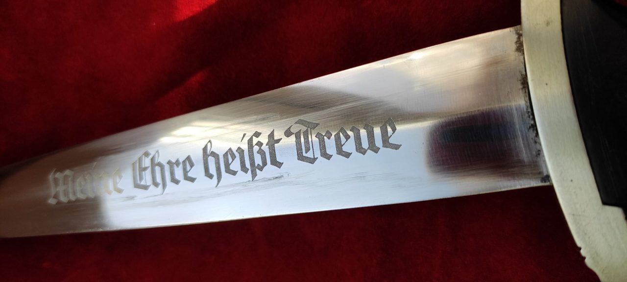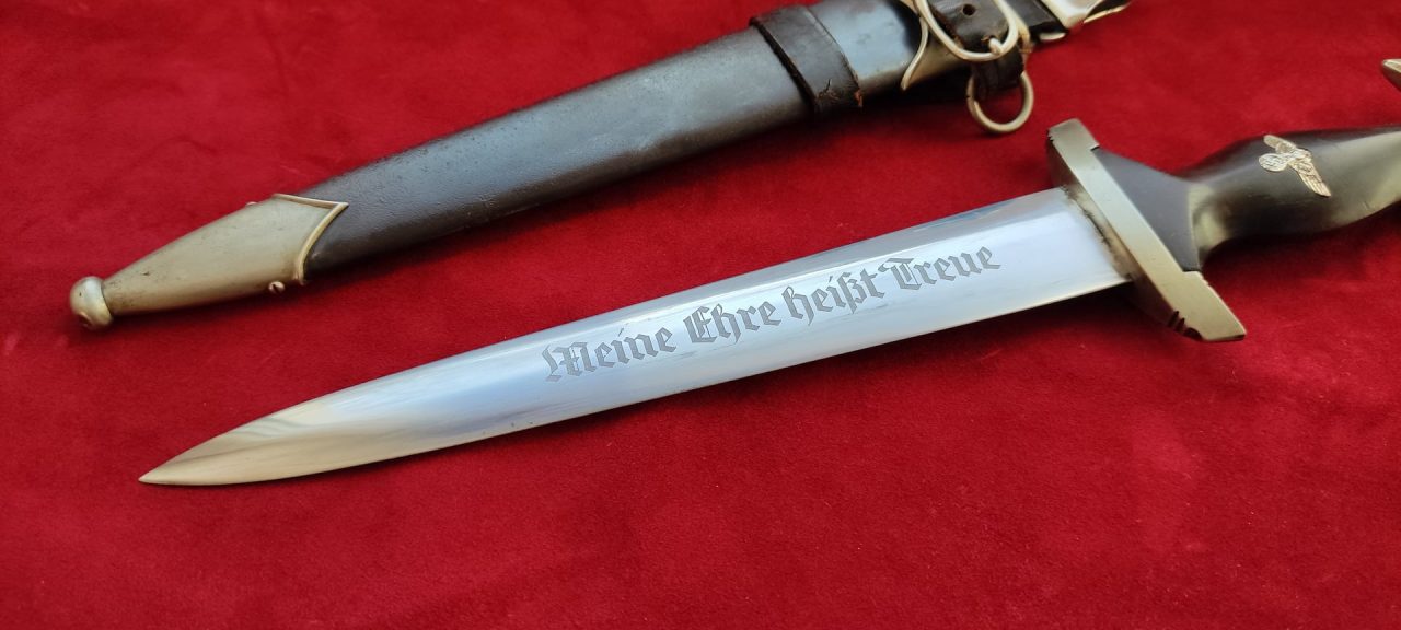 Клинок кинджала прямий, сталевий, дволезовий, кинджального типу, лінзоподібного типу. На одному боці клинка методом травлення нанесений девіз СС Meine Ehre heisst Treue (Моя честь називається вірністю). Клинок на зворотному боці біля основи стоїть тавро виробника Роберт Клаас Золінген (Robert Klaas Solingen).