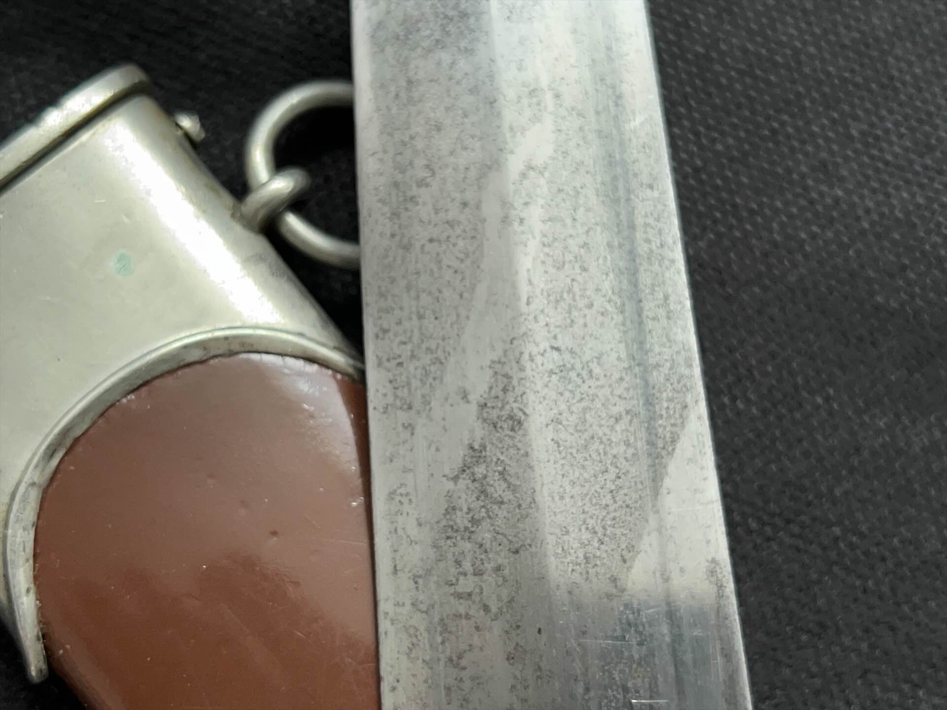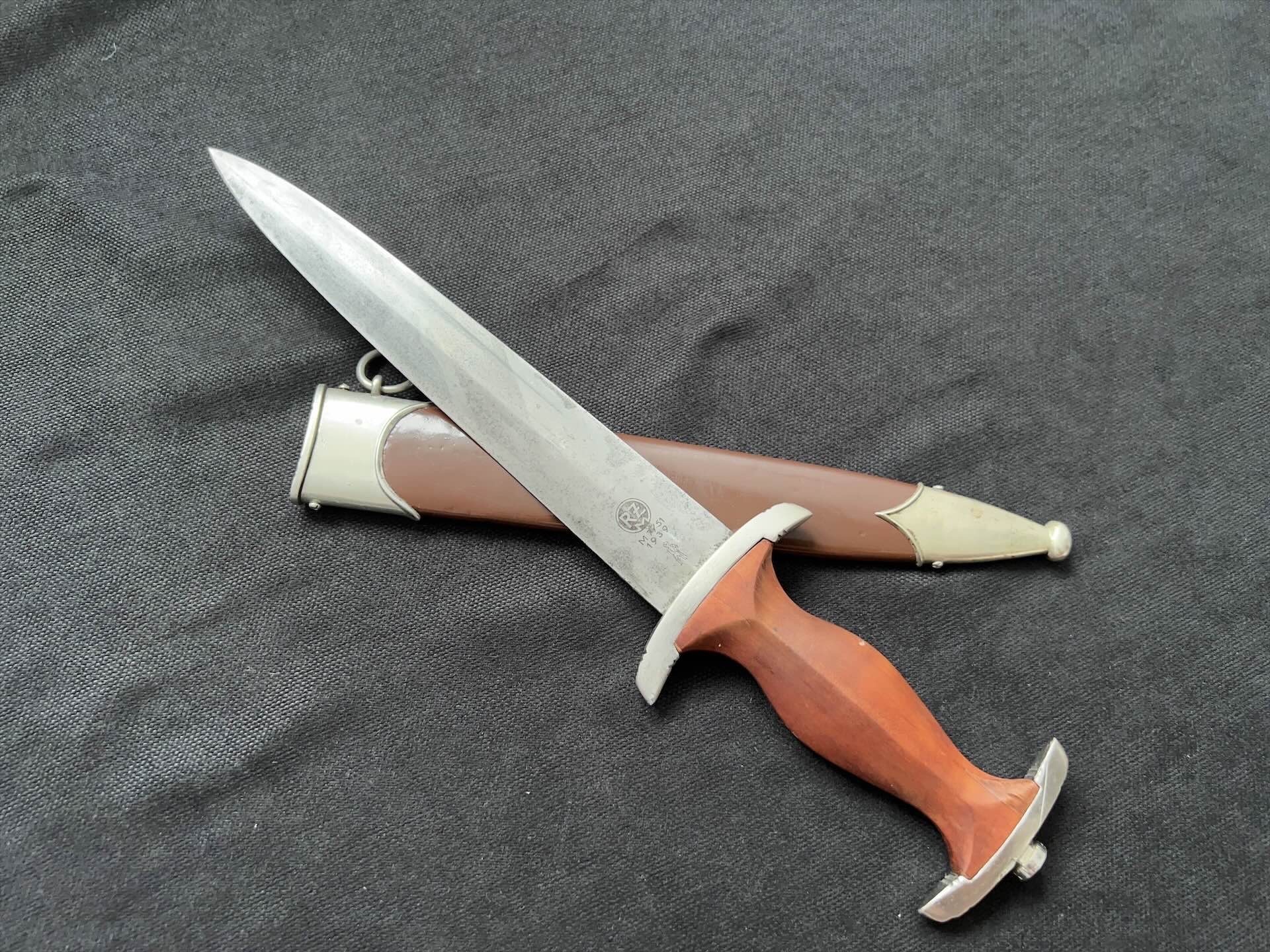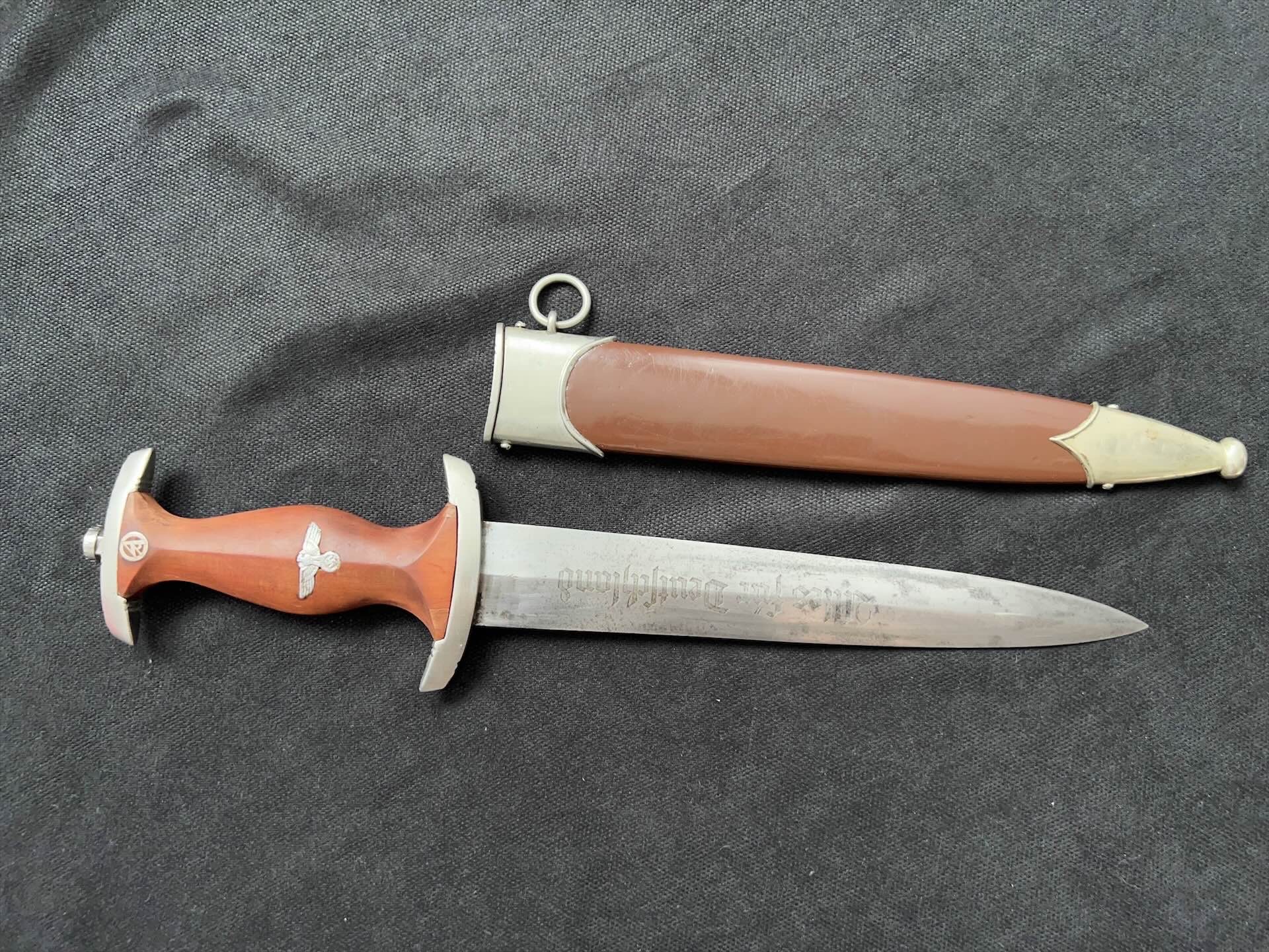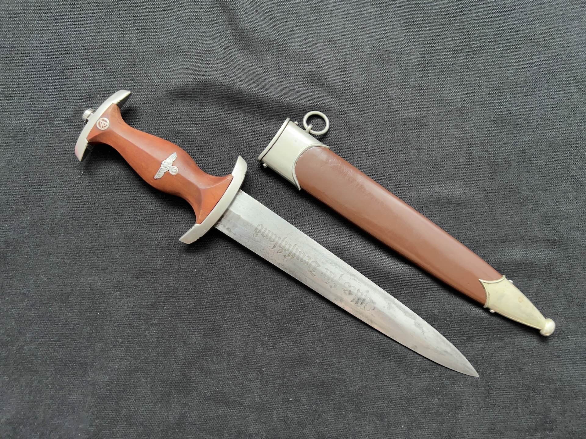 Клинок прямий, двогострий, плоский, ромбічний, плавно звужується до вістря, полірований. На лицьовій стороні напис готичним шрифтом «Alles fur Deutschland» — «Все для Німеччини». На п’ятій клинку є код RZM7/51, а також тавро німецької фірми «Anton Wingen Solingen» у вигляді лицаря.