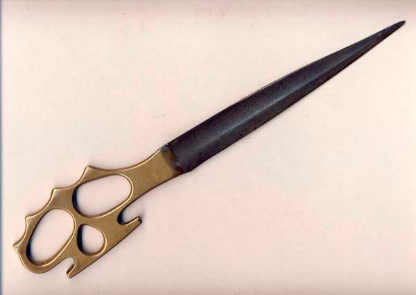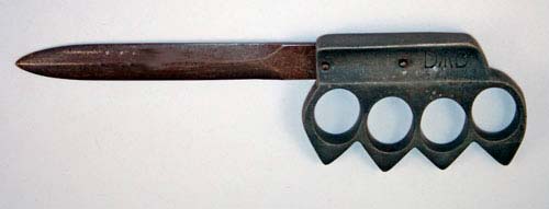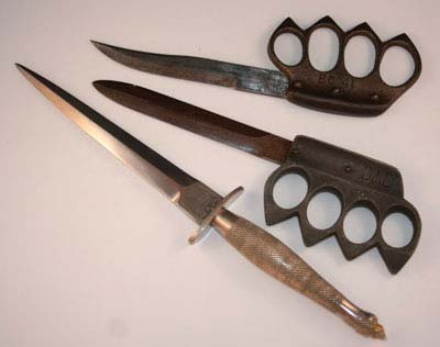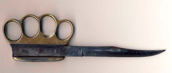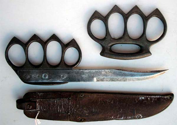 В 1940 году была большая потребность в настоящих боевых ножах. Ножи с кастетом были очень популярны во время Великой войны. Некоторые использовались и во время Второй мировой войны. Вот такой вот нож-кастет.